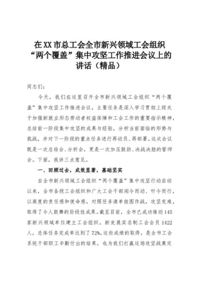 【七哥公文】2025年:在XX市总工会全市新兴领域工会组织“两个覆盖”集中攻坚工作推进会议上的讲话(精品)+更多免费公文+VX:QiGeGongWen2024