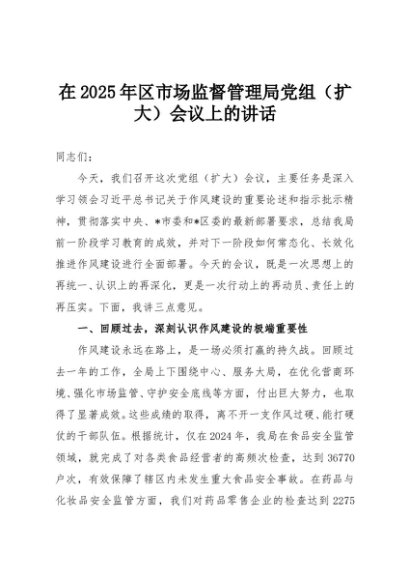 【七哥公文】2025年:在2025年区市场监督管理局党组(扩大)会议上的讲话+更多免费公文+VX:QiGeGongWen2024