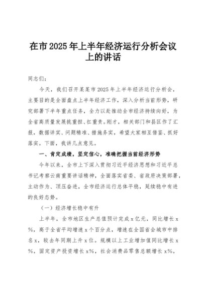/ 【七哥公文】2025年:在市2025年上半年经济运行分析会议上的讲话+更多免费公文+VX:QiGeGongWen2024