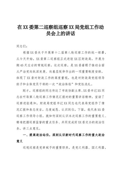 / 【七哥公文】2025年:在XX委第二巡察组巡察XX局党组工作动员会上的讲话+更多免费公文+VX:QiGeGongWen2024