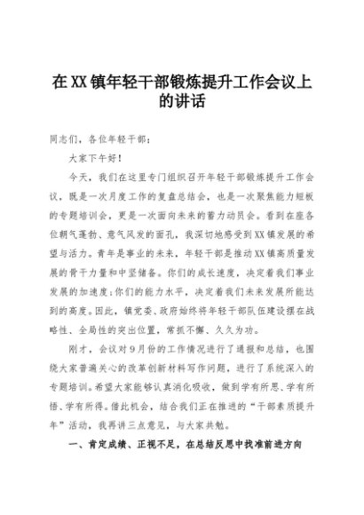 / 【七哥公文】2025年:在XX镇年轻干部锻炼提升工作会议上的讲话+更多免费公文+VX:QiGeGongWen2024