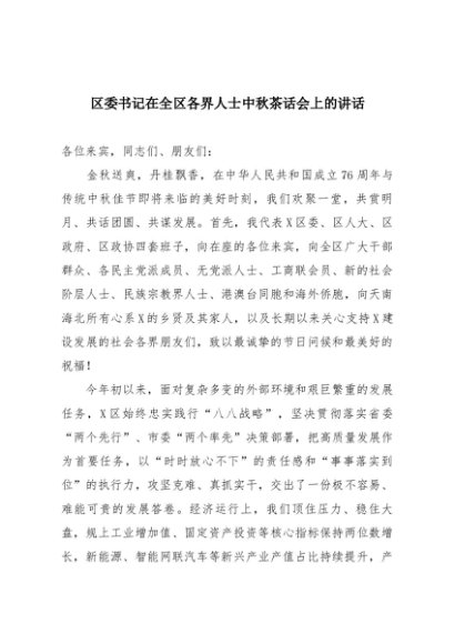 / 【七哥公文】2025年:区委书记在全区各界人士中秋茶话会上的讲话+更多免费公文+VX:QiGeGongWen2024
