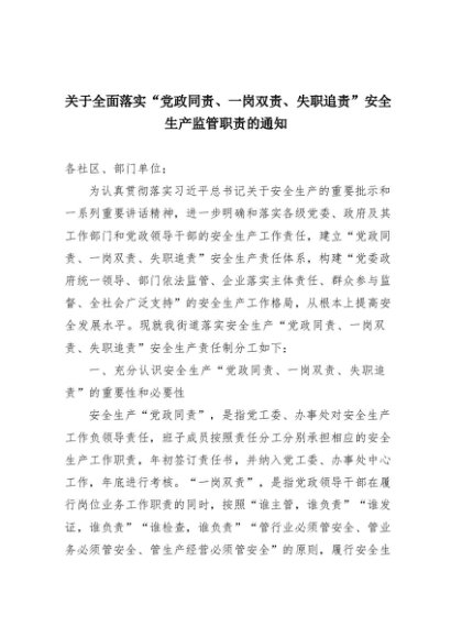 【七哥公文】2025年:全面落实“党政同责、一岗双责、失职追责”安全生产监管职责的通知(含乡镇安全生产工作责任清单)+更多免费公文+VX:QiGeGongWen2024