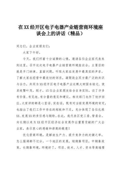 【七哥公文】2025年:在XX经开区电子电器产业链营商环境座谈会上的讲话(精品)+更多免费公文+VX:QiGeGongWen2024