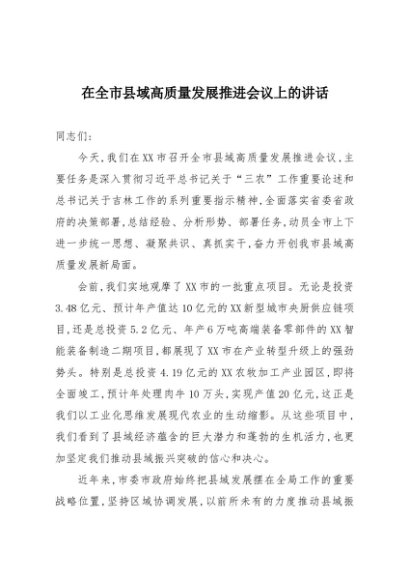 / 【七哥公文】2025年:在全市县域高质量发展推进会议上的讲话+更多免费公文+VX:QiGeGongWen2024