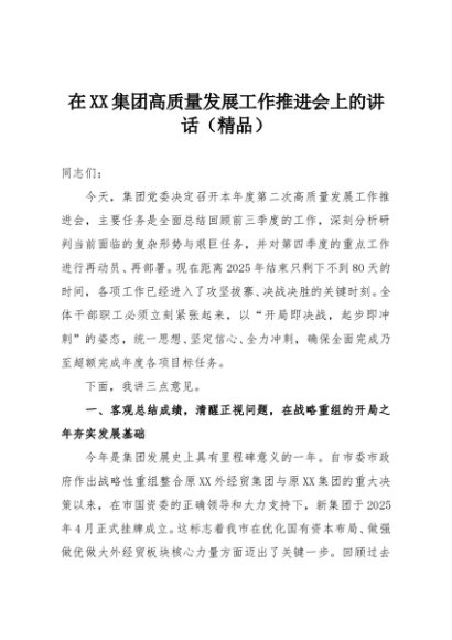 / 【七哥公文】2025年:在XX集团高质量发展工作推进会上的讲话(精品)+更多免费公文+VX:QiGeGongWen2024