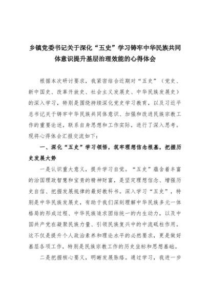 【七哥公文】2025年:乡镇党委书记关于深化“五史”学习铸牢中华民族共同体意识提升基层治理效能的心得体会+更多免费公文+VX:QiGeGongWen2024