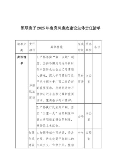 【七哥公文】2025年:党组领导班子、领导班子主要负责人及领导班子其他成员2025年度党风廉政建设主体责任清单+更多免费公文+VX:QiGeGongWen2024