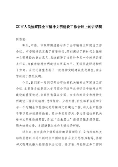 【七哥公文】2025年:XX市人民检察院全市精神文明建设工作会议上的讲话稿+更多免费公文+VX:QiGeGongWen2024