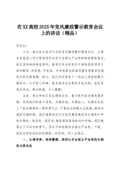 【七哥公文】2025年:在XX高校2025年党风廉政警示教育会议上的讲话(精品)+更多免费公文+VX:QiGeGongWen2024