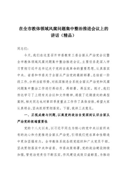 【七哥公文】2025年:在全市教体领域风腐问题集中整治推进会议上的讲话(精品)+更多免费公文+VX:QiGeGongWen2024