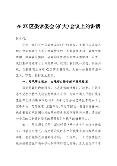/ 【七哥公文】2025年:在XX区委常委会(扩大)会议上的讲话+更多免费公文+VX:QiGeGongWen2024