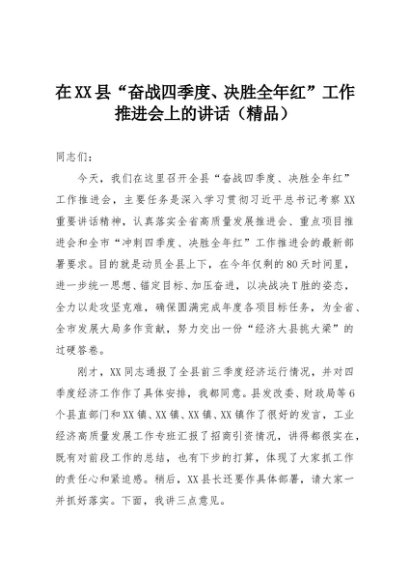 【七哥公文】2025年:在XX县“奋战四季度、决胜全年红”工作推进会上的讲话(精品)+更多免费公文+VX:QiGeGongWen2024