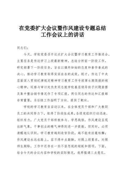 / 【七哥公文】2025年:在党委扩大会议暨作风建设专题总结工作会议上的讲话+更多免费公文+VX:QiGeGongWen2024