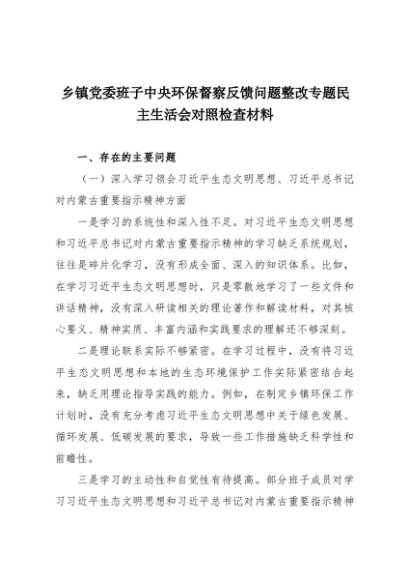 【七哥公文】2025年:乡镇党委班子中央环保督察反馈问题整改专题民主生活会对照检查材料+更多免费公文+VX:QiGeGongWen2024