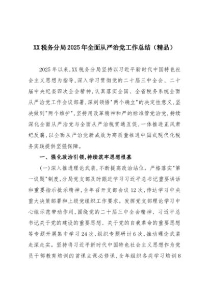 【七哥公文】2025年:XX税务分局2025年全面从严治党工作总结(精品)+更多免费公文+VX:QiGeGongWen2024