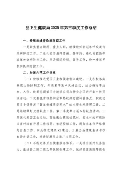 / 【七哥公文】2025年:县卫生健康局2025年第三季度工作总结+更多免费公文+VX:QiGeGongWen2024
