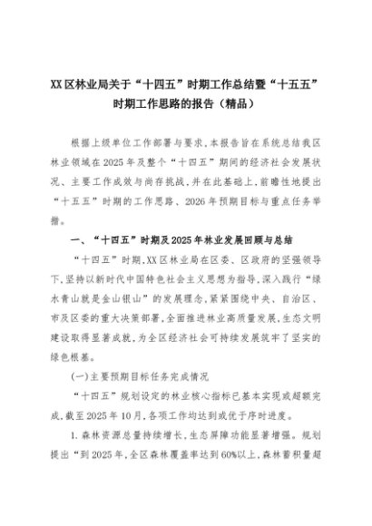 【七哥公文】2025年:XX区林业局关于“十四五”时期工作总结暨“十五五”时期工作思路的报告(精品)+更多免费公文+VX:QiGeGongWen2024