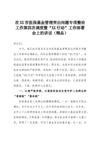 【七哥公文】2025年:在XX市医保基金管理突出问题专项整治工作第四次调度暨“XX行动”工作部署会上的讲话(精品)+更多免费公文+VX:QiGeGongWen2024