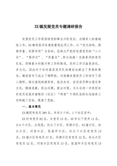 【七哥公文】2025年:XX镇发展党员专题调研报告+更多免费公文+VX:QiGeGongWen2024