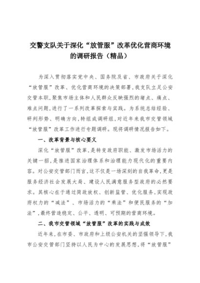 【七哥公文】2025年:交警支队关于深化“放管服”改革优化营商环境的调研报告(精品)+更多免费公文+VX:QiGeGongWen2024