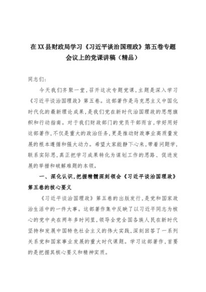 【七哥公文】2025年:在XX县财政局学习《习近平谈治国理政》第五卷专题会议上的党课讲稿(精品)+更多免费公文+VX:QiGeGongWen2024