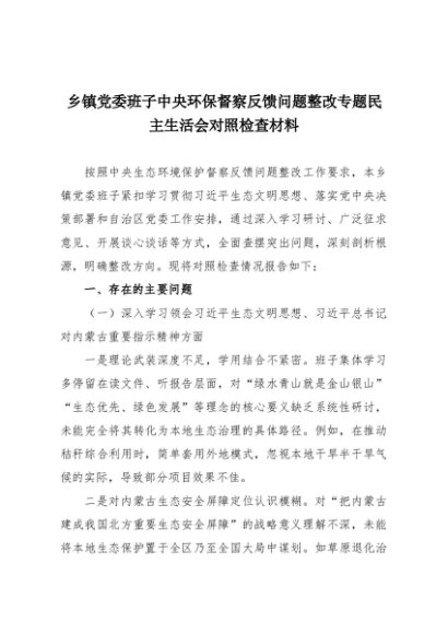 【七哥公文】2025年:乡镇党委班子中央环保督察反馈问题整改专题民主生活会对照检查材料+更多免费公文+VX:QiGeGongWen2024