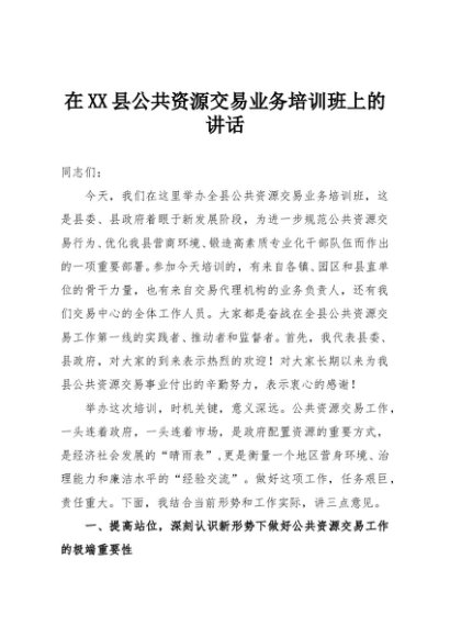 / 【七哥公文】2025年:在XX县公共资源交易业务培训班上的讲话+更多免费公文+VX:QiGeGongWen2024