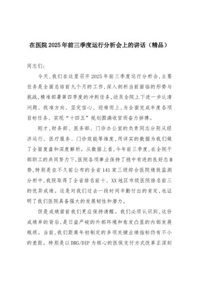 【七哥公文】2025年:在医院2025年前三季度运行分析会上的讲话(精品)+更多免费公文+VX:QiGeGongWen2024