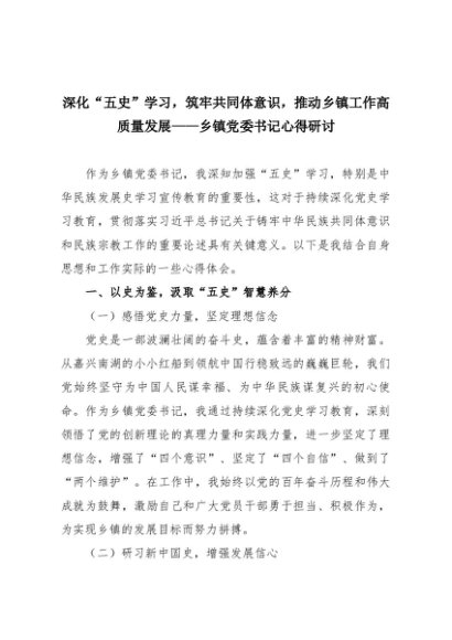 【七哥公文】2025年:深化“五史”学习,筑牢共同体意识,推动乡镇工作高质量发展——乡镇党委书记心得研讨+更多免费公文+VX:QiGeGongWen2024