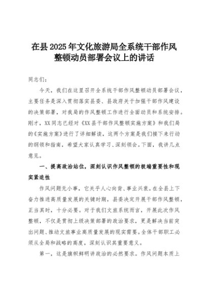 【七哥公文】2025年:在县2025年文化旅游局全系统干部作风整顿动员部署会议上的讲话+更多免费公文+VX:QiGeGongWen2024