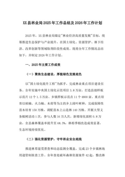 【七哥公文】2025年:XX县林业局2025年工作总结及2026年工作计划_副本+更多免费公文+VX:QiGeGongWen2024