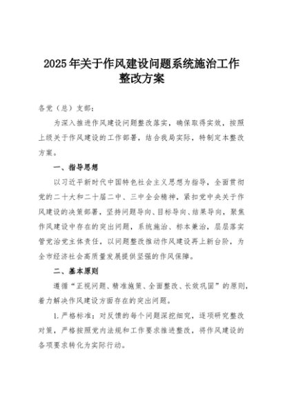 / 【七哥公文】2025年:2025年关于作风建设问题系统施治工作整改方案+更多免费公文+VX:QiGeGongWen2024