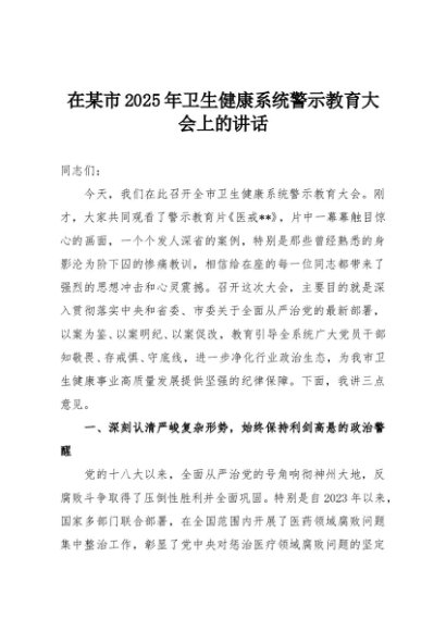/ 【七哥公文】2025年:在某市2025年卫生健康系统警示教育大会上的讲话+更多免费公文+VX:QiGeGongWen2024