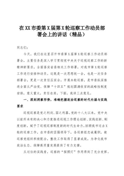 【七哥公文】2025年:在XX市委第X届第X轮巡察工作动员部署会上的讲话(精品)+更多免费公文+VX:QiGeGongWen2024