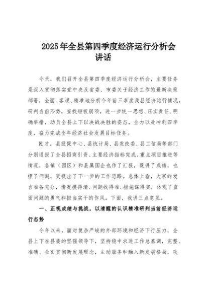 / 【七哥公文】2025年:2025年全县第四季度经济运行分析会讲话+更多免费公文+VX:QiGeGongWen2024