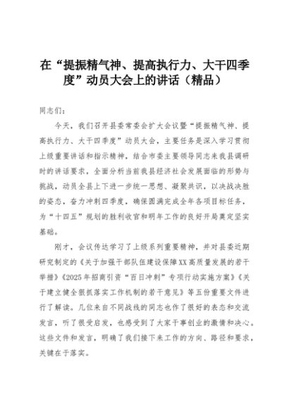 【七哥公文】2025年:在“提振精气神、提高执行力、大干四季度”动员大会上的讲话(精品)+更多免费公文+VX:QiGeGongWen2024