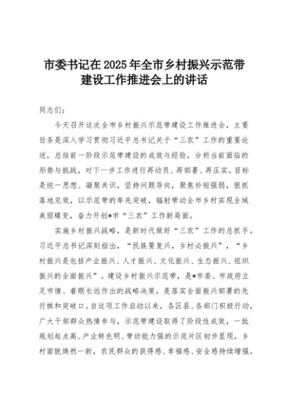 【七哥公文】2025年:市委书记在2025年全市乡村振兴示范带建设工作推进会上的讲话+更多免费公文+VX:QiGeGongWen2024