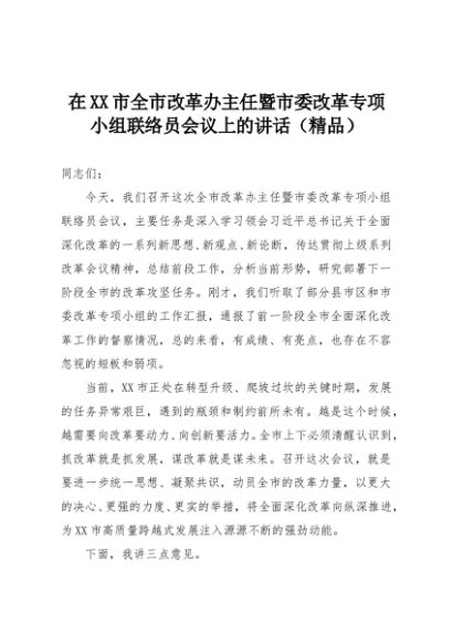 【七哥公文】2025年:在XX市全市改革办主任暨市委改革专项小组联络员会议上的讲话(精品)+更多免费公文+VX:QiGeGongWen2024