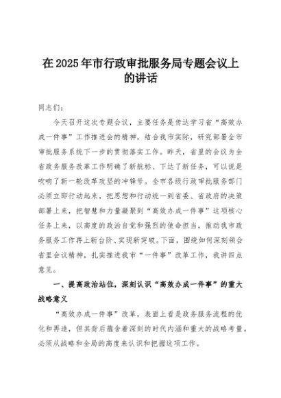 / 【七哥公文】2025年:在2025年市行政审批服务局专题会议上的讲话+更多免费公文+VX:QiGeGongWen2024