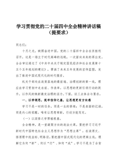 / 【七哥公文】2025年:学习贯彻党的二十届四中全会精神讲话稿(提要求)+更多免费公文+VX:QiGeGongWen2024