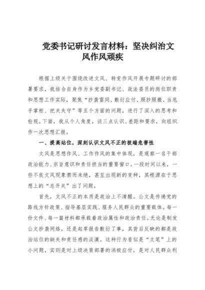/ 【七哥公文】2025年:党委书记研讨发言材料:坚决纠治文风作风顽疾+更多免费公文+VX:QiGeGongWen2024