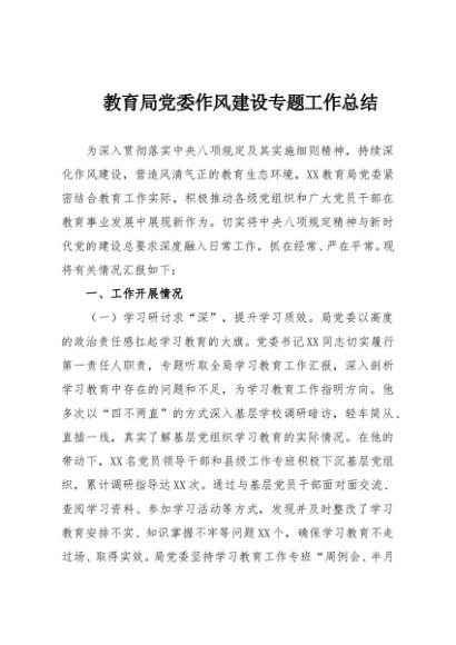 / 【七哥公文】2025年:教育局党委作风建设专题工作总结+更多免费公文+VX:QiGeGongWen2024