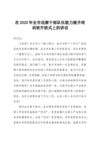 【七哥公文】2025年:在2025年全市巡察干部队伍能力提升培训班开班式上的讲话+更多免费公文+VX:QiGeGongWen2024