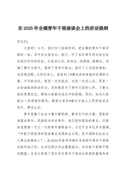/ 【七哥公文】2025年:在2025年全镇青年干部座谈会上的讲话提纲+更多免费公文+VX:QiGeGongWen2024