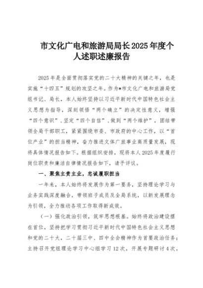 / 【七哥公文】2025年:市文化广电和旅游局局长2025年度个人述职述廉报告+更多免费公文+VX:QiGeGongWen2024