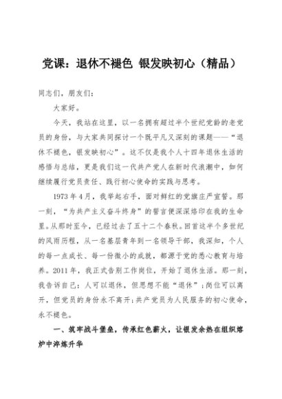 【七哥公文】2025年:党课:退休不褪色 银发映初心(精品)+更多免费公文+VX:QiGeGongWen2024
