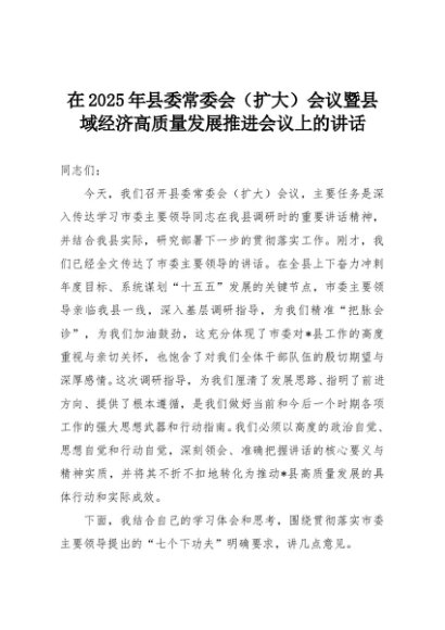 【七哥公文】2025年:在2025年县委常委会(扩大)会议暨县域经济高质量发展推进会议上的讲话+更多免费公文+VX:QiGeGongWen2024