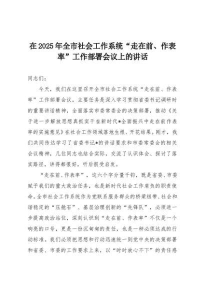 【七哥公文】2025年:在2025年全市社会工作系统“走在前、作表率”工作部署会议上的讲话+更多免费公文+VX:QiGeGongWen2024