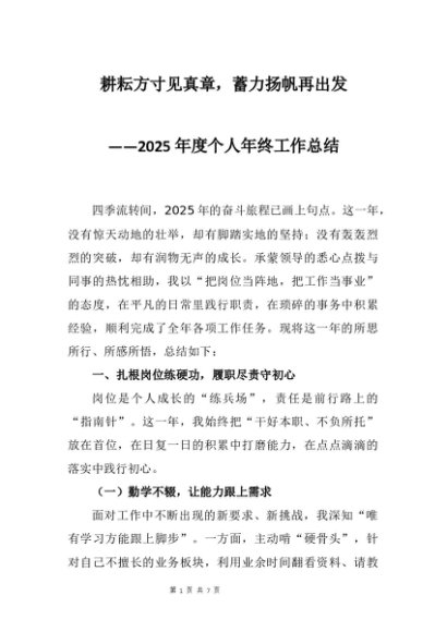 【七哥公文】2025年:2025年度个人年终工作总结:耕耘方寸见真章,蓄力扬帆再出发+更多免费公文+VX:QiGeGongWen2024